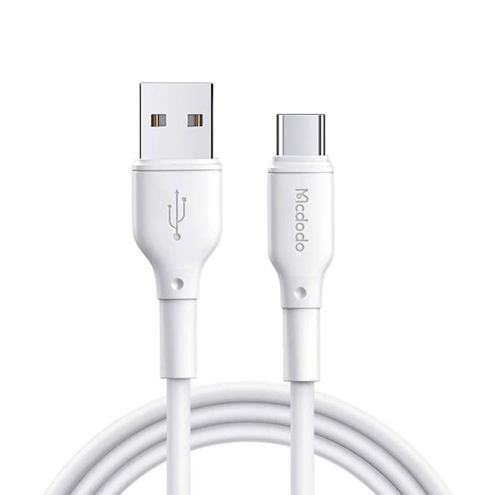 Mcdodo CA-7280 USB-A to USB-C Charging Cable 3А - кабел с гумирана обвивка за устройства с USB-C порт (120 см) (бял)