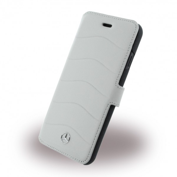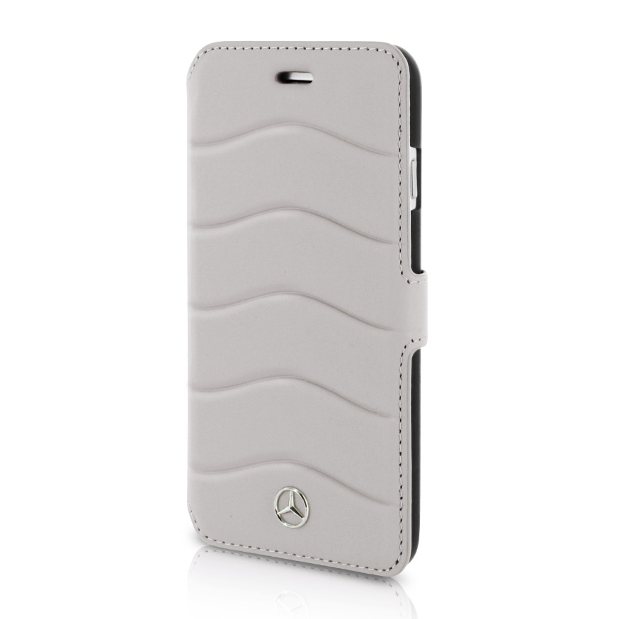 Mercedes-Benz Folio Case - кожен калъф (естествена кожа), тип портфейл за iPhone SE 2020, iPhone 7, iPhone 8 (сив)