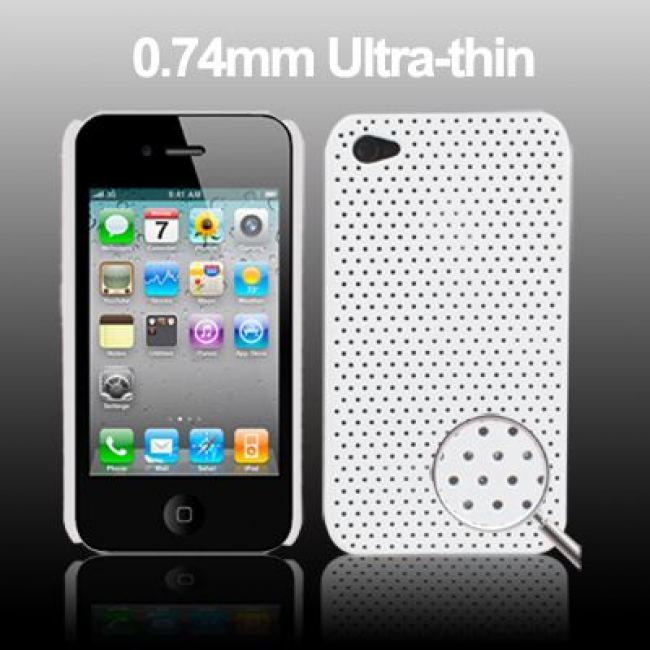 Mesh 0.74 мм поликарбонатов кейс за iPhone 4 (бял)
