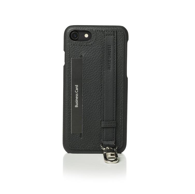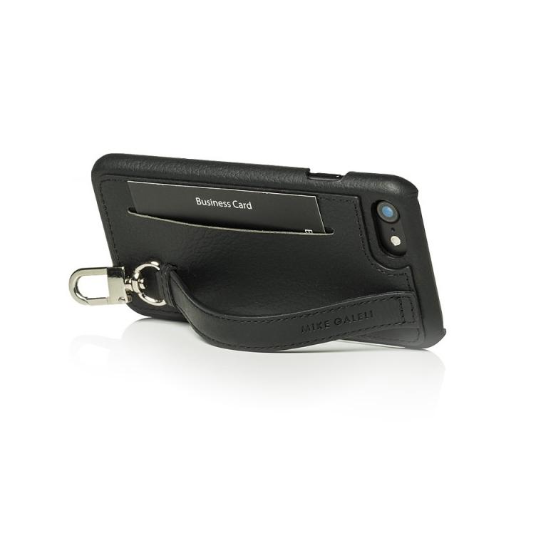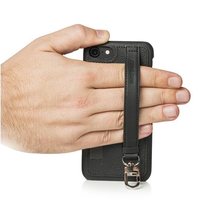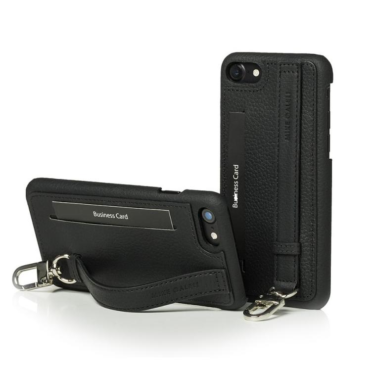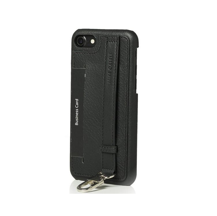 Mike Galeli Back Case JESSE - кожен (естествена кожа) кейс с въже за ръката и джоб за кредитна карта за iPhone SE 2020, iPhone 7, iPhone 8 (черен)