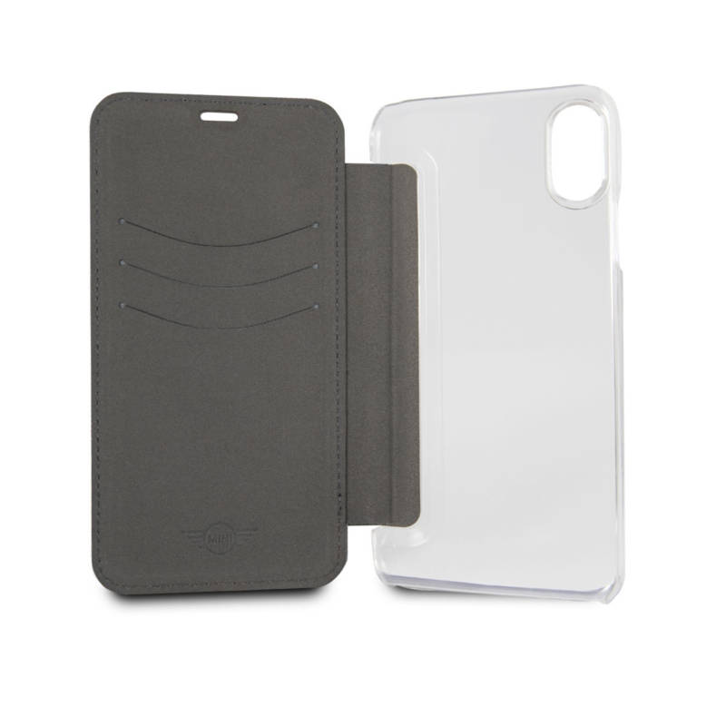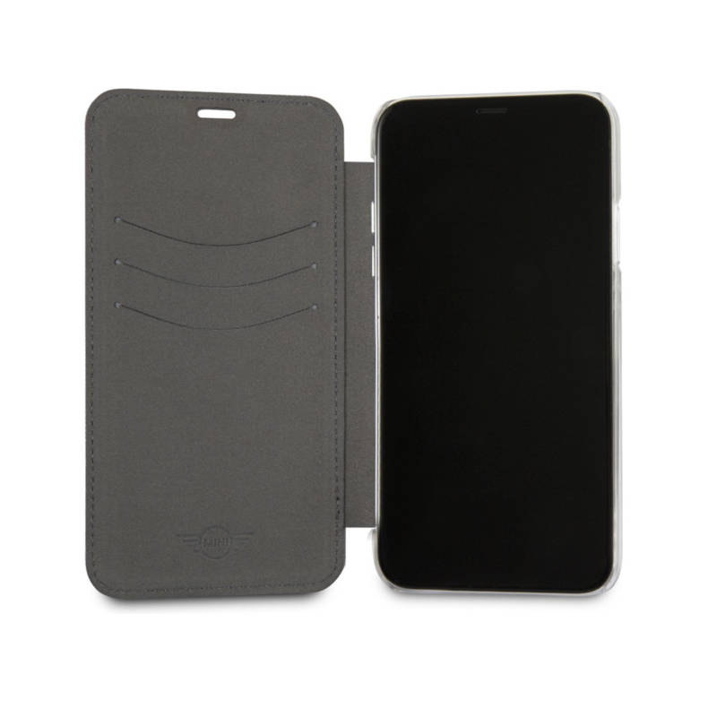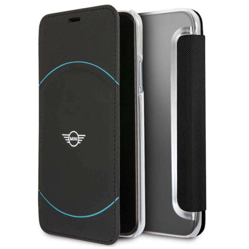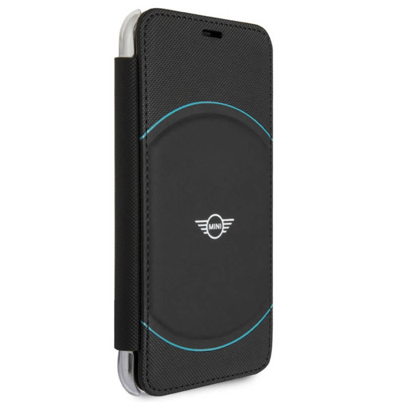 Mini Cooper Debossed Circle PU Leather Booktype Case - кожен калъф, тип портфейл за iPhone XS, iPhone X (черен)
