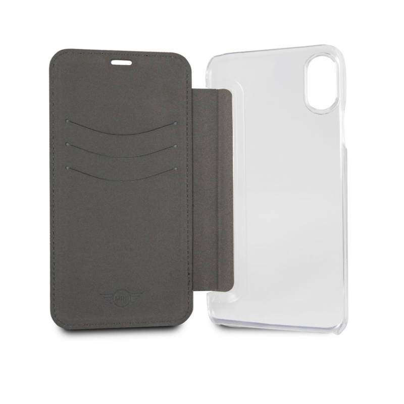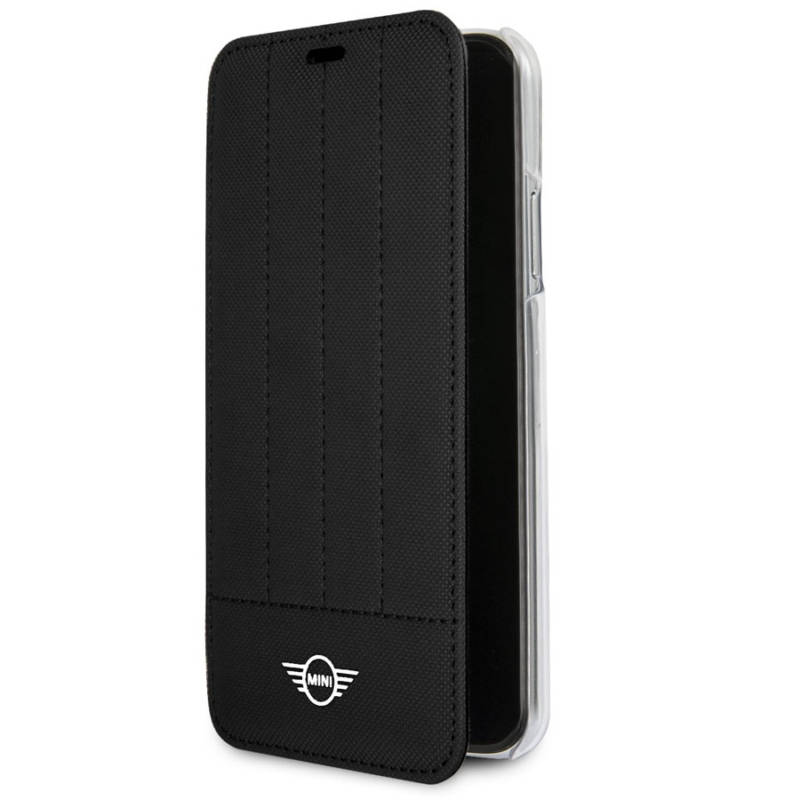 Mini Cooper Debossed Lines PU Leather Booktype Case - кожен калъф, тип портфейл за iPhone XS, iPhone X (черен)