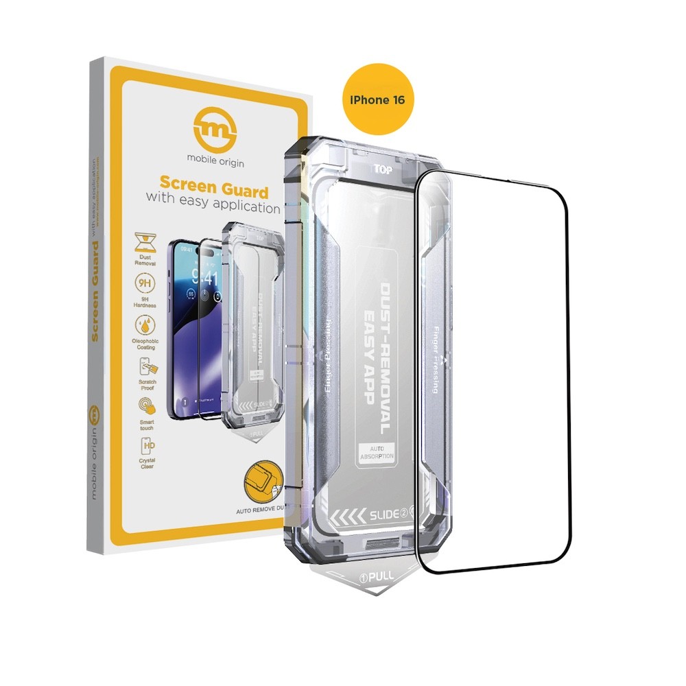 Mobile Origin Screen Guard Full Cover Tempered Glass - стъклено защитно покритие за дисплея на iPhone 16 (черен-прозрачен)