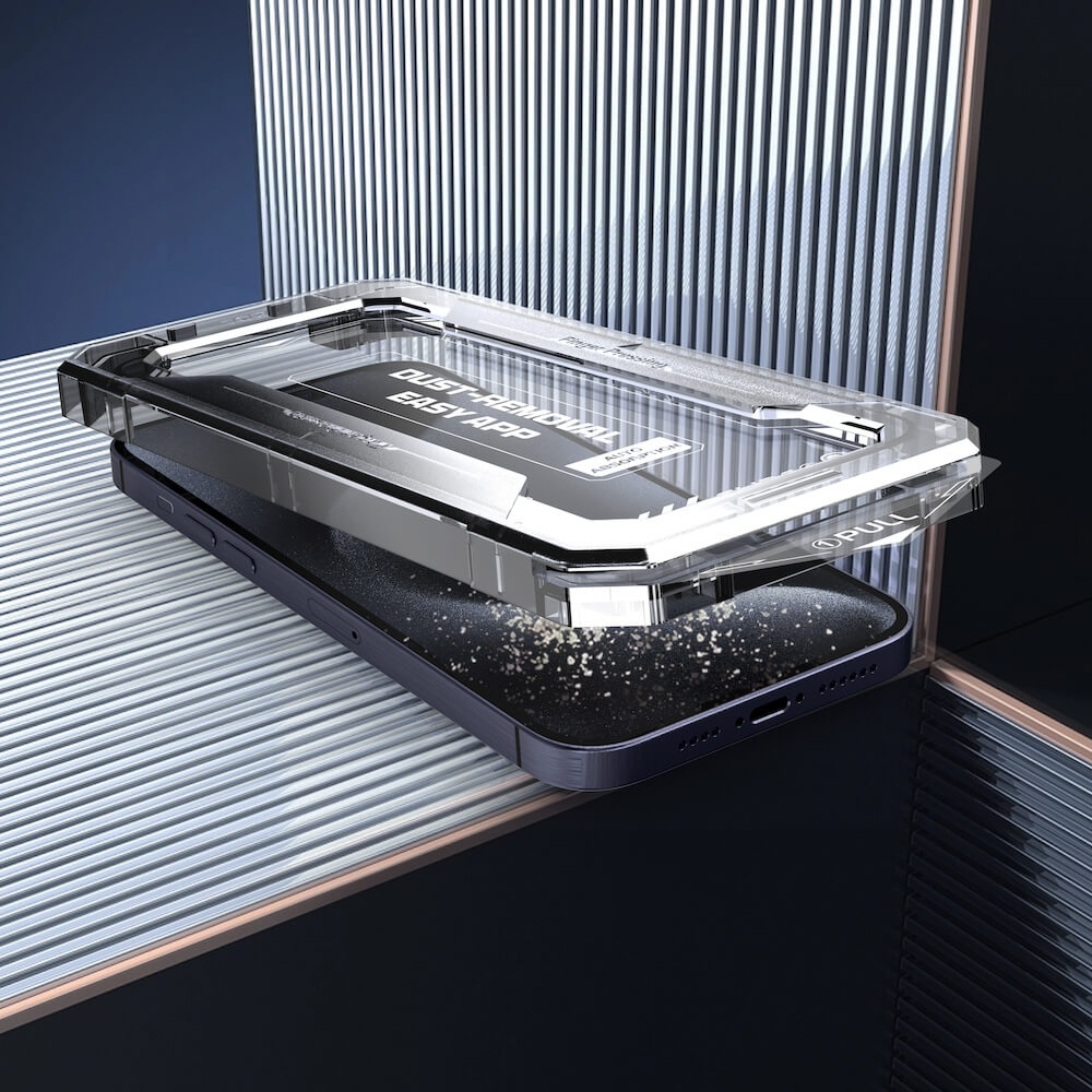 - 3. Подравнете и приложете стъкления протектор върху телефона