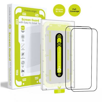 Mobile Origin Screen Guard Tempered Glass 2 Pack - 2 броя калени стъклени защитни покрития за дисплея на iPhone 16 Plus (черен-прозрачен)