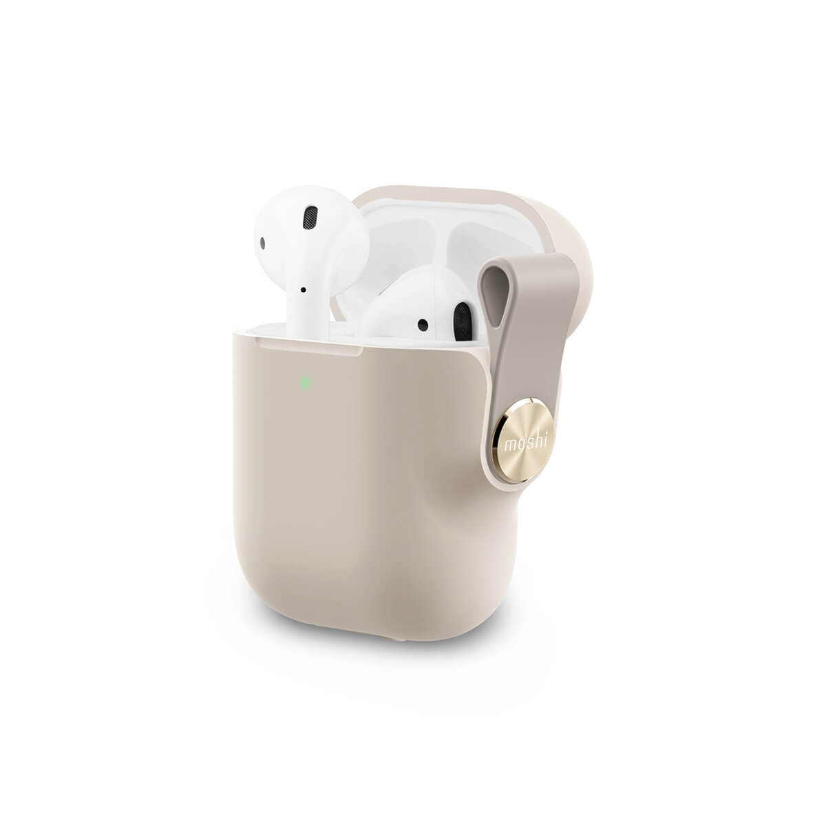 Moshi Pebbo Detachable Wrist Strap Case - силиконов кейс с каишка за Apple Airpods и Apple Airpods 2 (бежов)