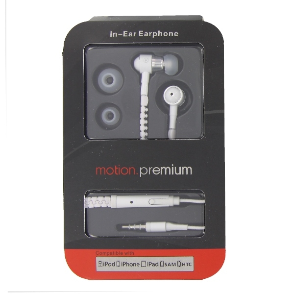 •Motion Zipper In-ear headset with microphone - слушалки с цип и микрофон за мобилни устройства (бял)