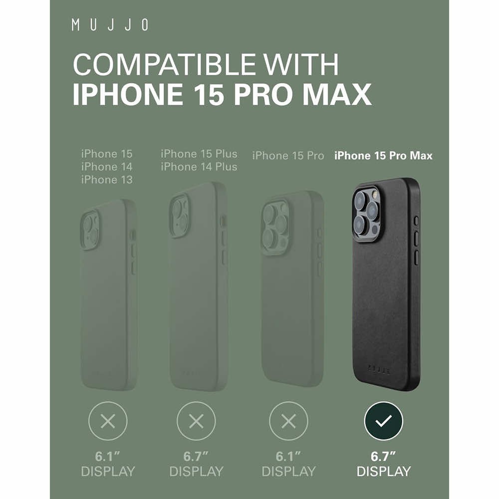 Mujjo Full Cover Tempered Glass 2 Pack - 2 броя стъклени защитни покрития за дисплея на iPhone 15 Pro Max (черен-прозрачен)