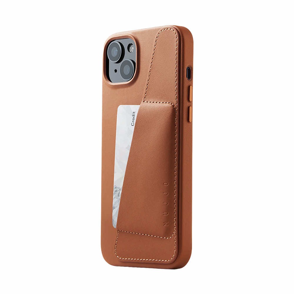 Mujjo Full Leather Wallet Case - премиум кожен (естествена кожа) кейс за iPhone 15 Plus, iPhone 14 Plus (кафяв)