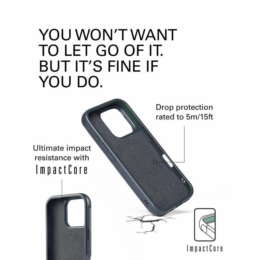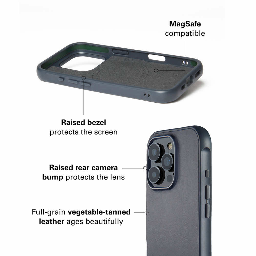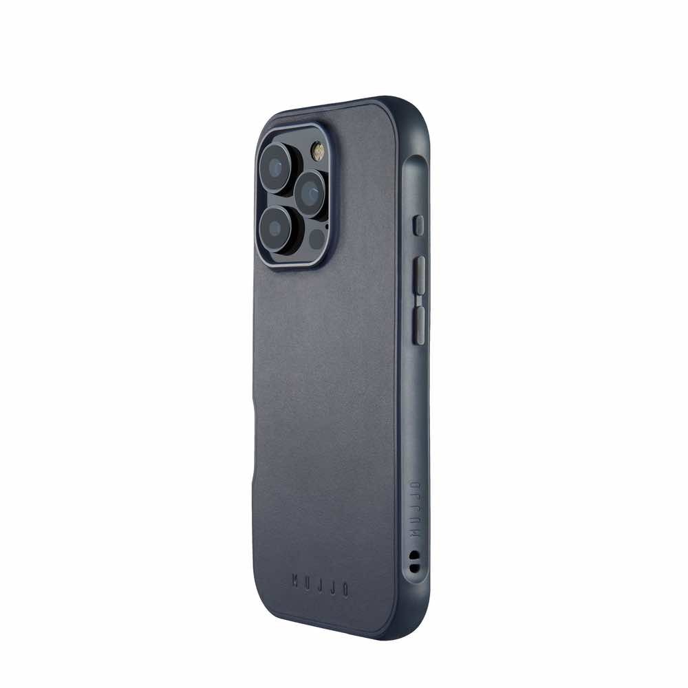 Mujjo Leather Shield Case - хибриден удароустойчив кейс от естествена кожа с MagSafe за iPhone 16 Pro (син)