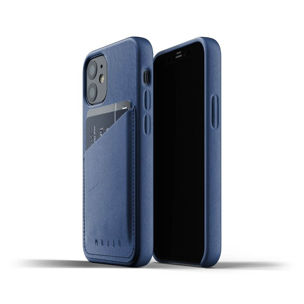 Mujjo Leather Wallet Case - кожен (естествена кожа) кейс с джоб за кредитна карта за iPhone 12 mini (син)