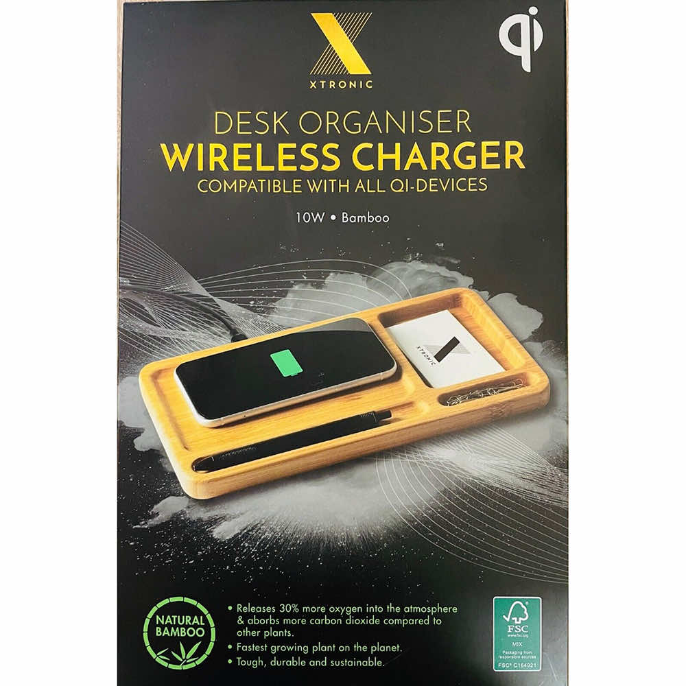 Настолен органайзер с поставка (пад) за безжично зареждане за Qi съвместими устройства - Xtronic Desk Organiser and Wireless Charger 10W (бамбук)