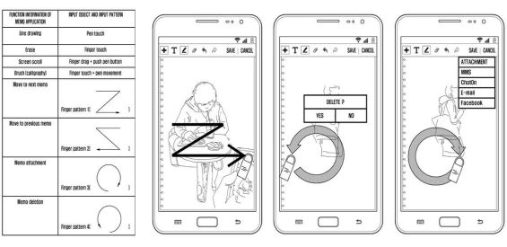 Друг патентен чертеж разкрива функции за бързо означаване. Ако потребителят издърпа кръг по посока на часовниковата стрелка, например, се отваря меню, което разделя показаното съобщение. За кръг, обратна на часовниковата стрелка, написаното може да бъде изтрито чрез изскачащото меню. При движение посока Z, потребителят може да премине към предишната или следващата бележка в зависимост от посоката на чертежа. Това спестява време и изглежда доста просто.