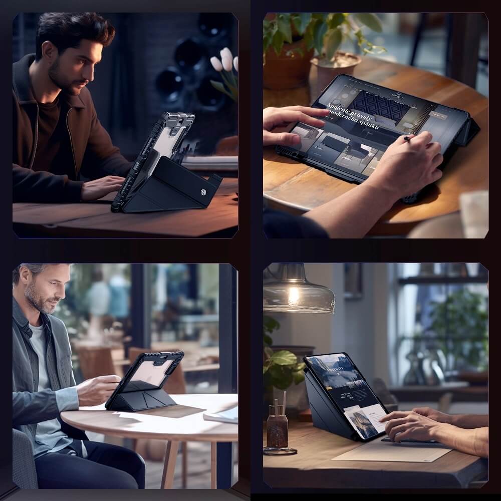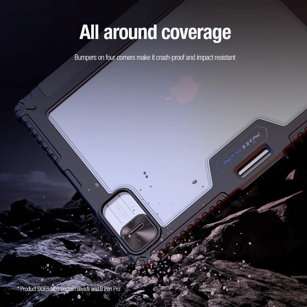 Nillkin Bumper PRO Protective Stand Case - удароустойчив хибриден кейс за iPad Air 13 (2025), iPad Air 13 (2024), iPad Pro 12.9 M2 (2022), iPad Pro 12.9 M1 (2021), iPad Pro 12.9 (2020) (черен)