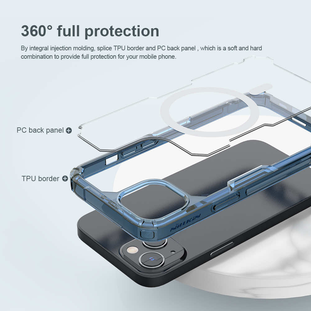 Nillkin Nature TPU Pro Magnetic Case - хибриден удароустойчив кейс с MagSafe за iPhone 13 (син)
