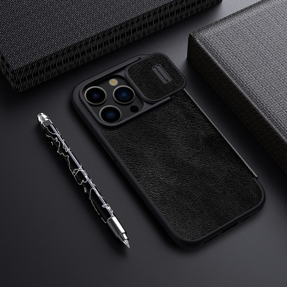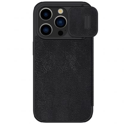 Nillkin Qin Book Pro Leather Flip Case - кожен калъф, тип портфейл за iPhone 15 Pro Max (черен)