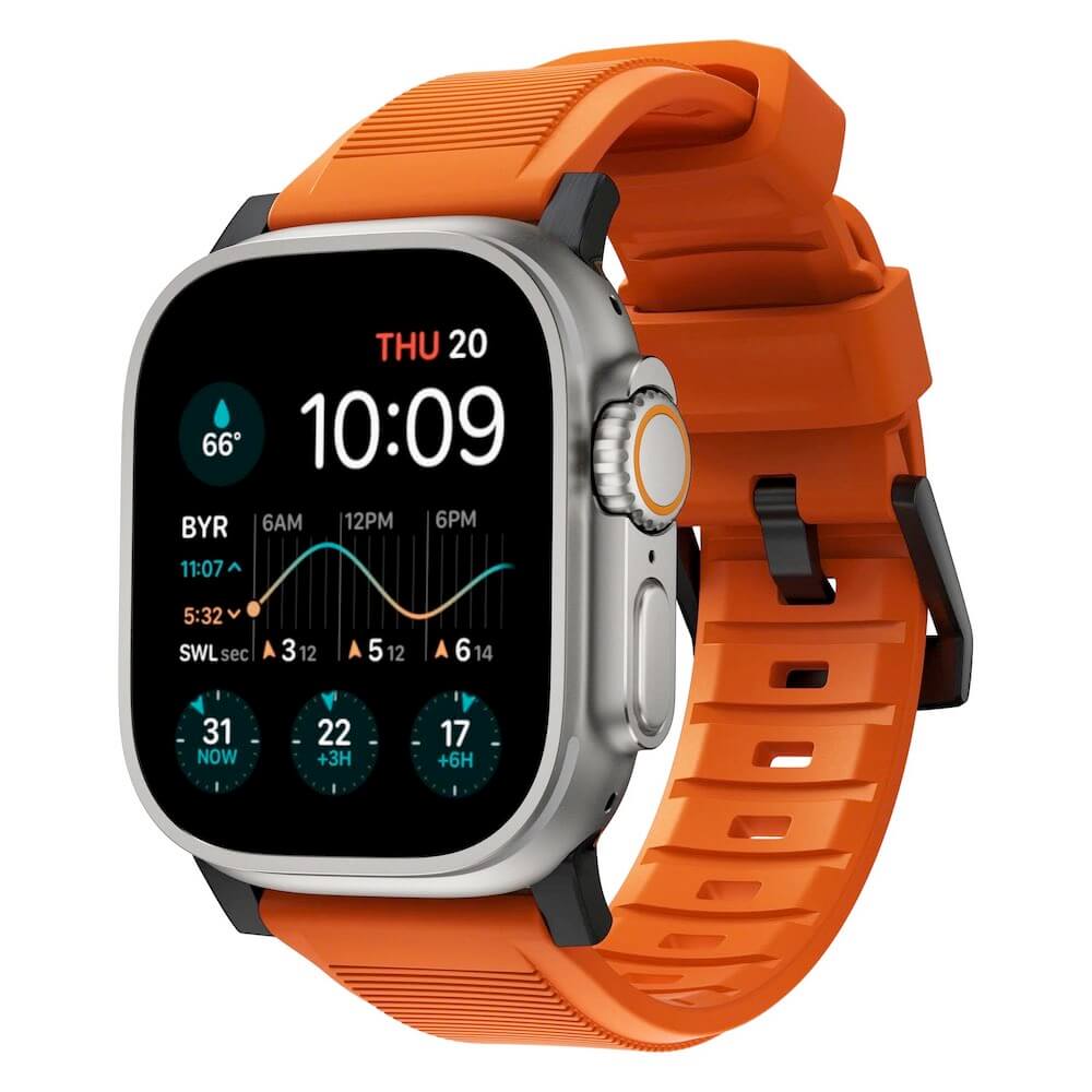 Nomad Rugged Strap - силиконова каишка за Apple Watch 42мм, 44мм, 45мм, 46мм, Ultra 49мм (оранжев-черен)
