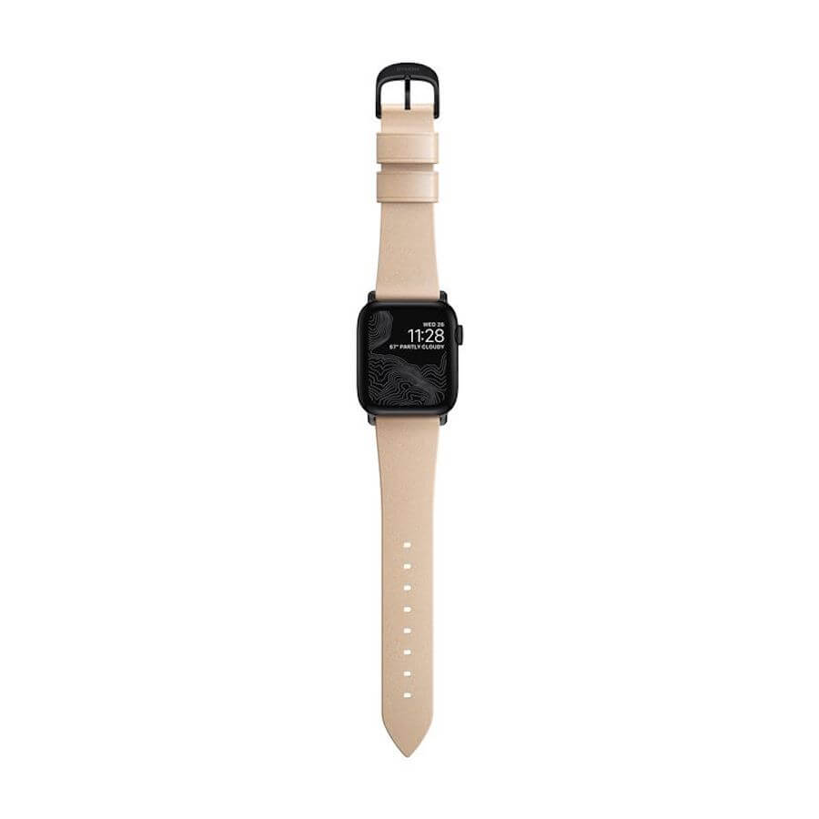 Nomad Strap Modern Slim Leather - кожена (естествена кожа) каишка за Apple Watch 38мм, 40мм, 41мм (бежов-черен)