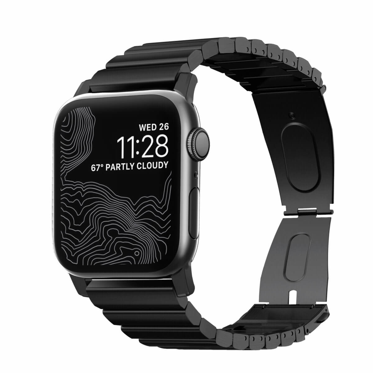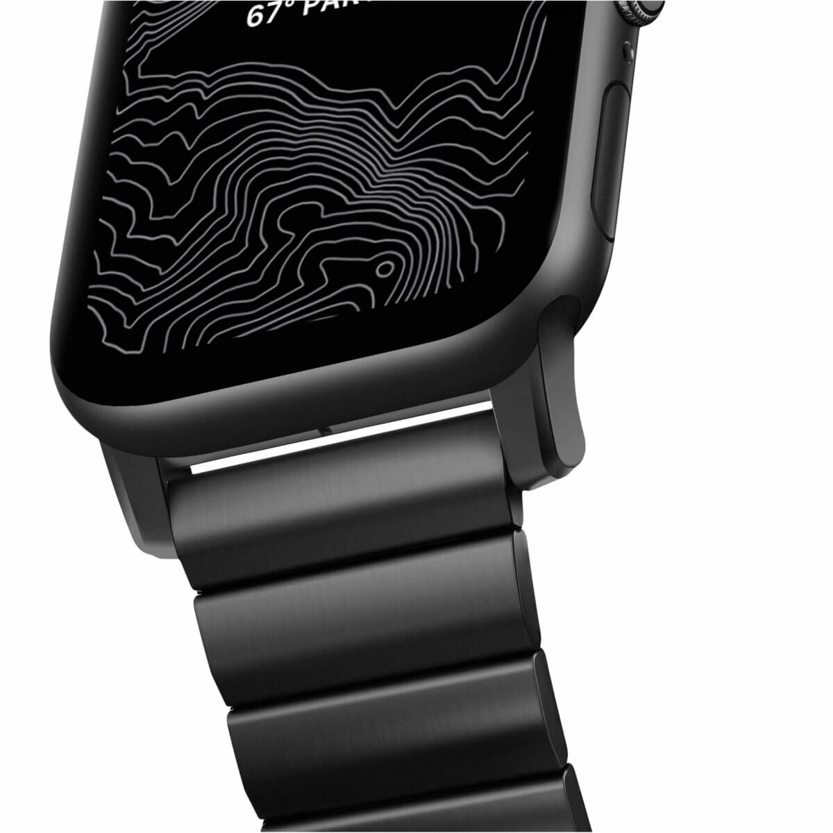 Nomad Strap Stainless Steel Band - титаниева каишка за Apple Watch 42мм, 44мм (черен)