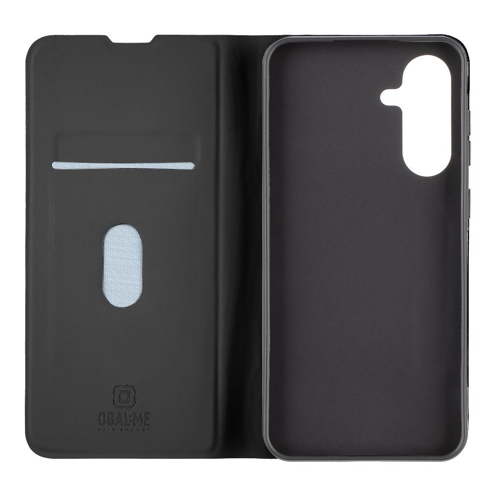 OBALME SmoothTouch Leather Flip Case - кожен калъф, тип портфейл с поставка и отделение за кр. карти за Samsung Galaxy A36 5G (черен)