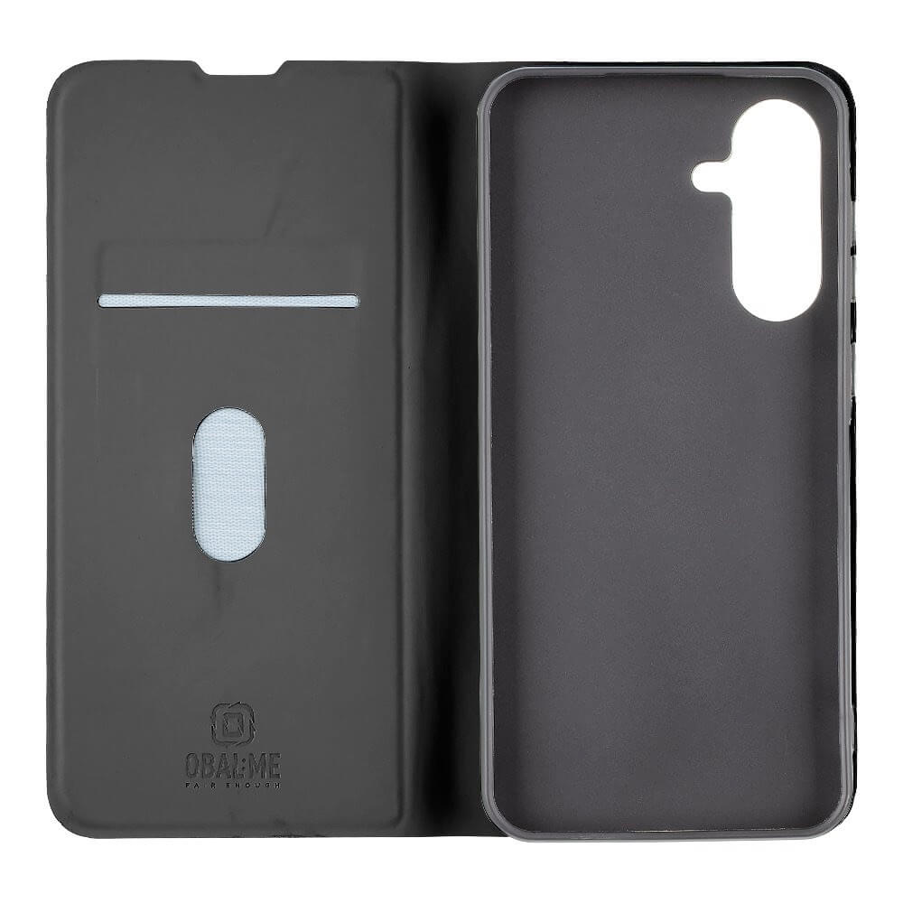 OBALME SmoothTouch Leather Flip Case - кожен калъф, тип портфейл с поставка и отделение за кр. карти за Samsung Galaxy A56 5G (черен)