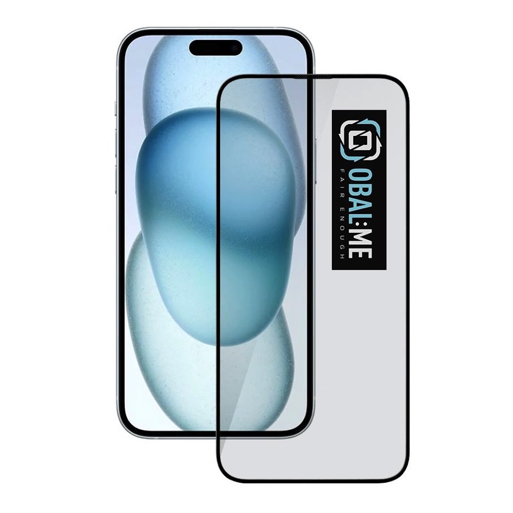 OBALME Tempered Glass Screen Protector 5D - обхващащо и ръбовете стъклено защитно покритие за дисплея на iPhone 15 Plus (черен-прозрачен)