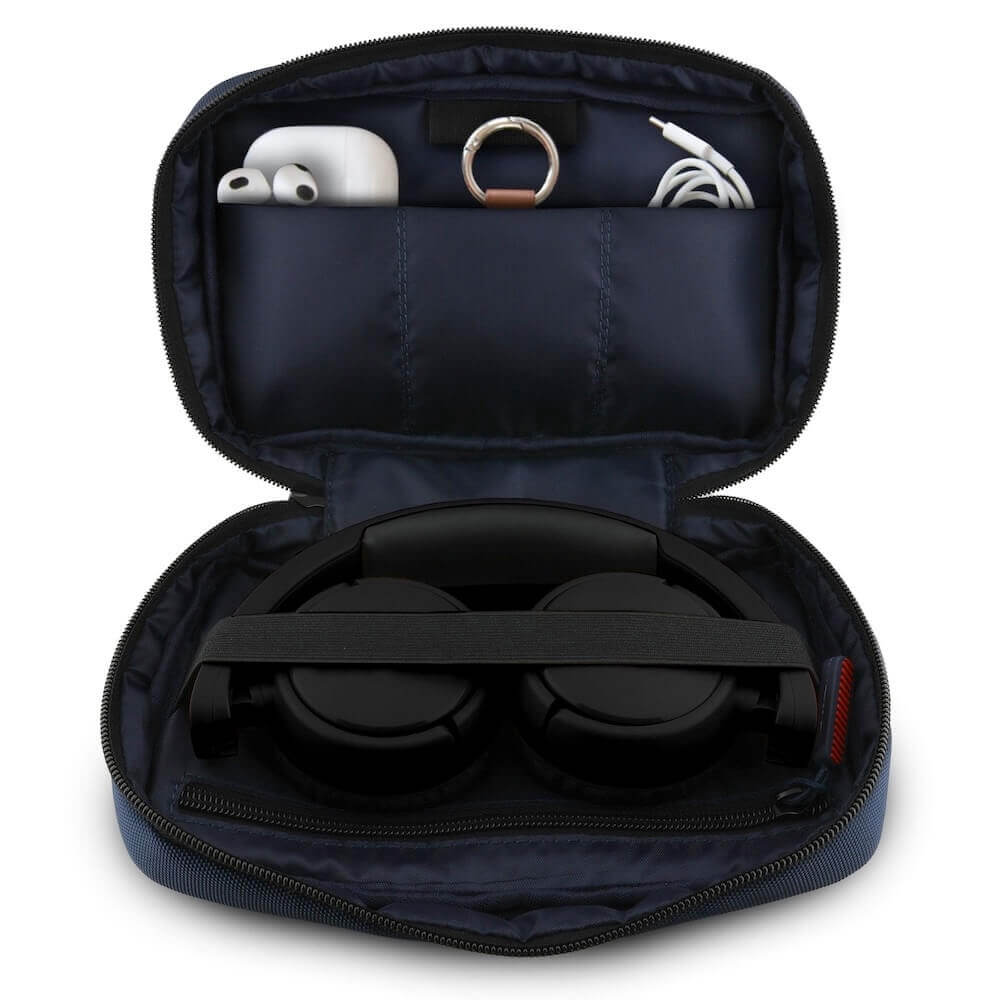 - Луксозен органайзер от здрав текстил за вашите дребни аксесоари, като захранвания, кабели, адаптери, външни батерии и други. Това осигурява по-добра организация и защита на вашите вещи.