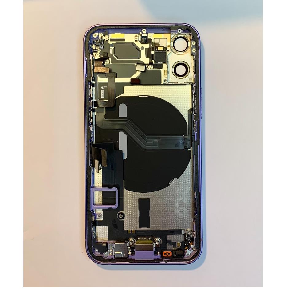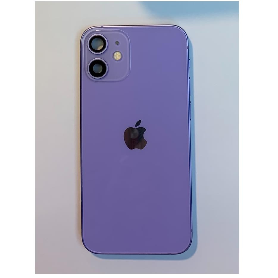 - iPhone 12 mini Backcover Full Assembly - оригинален резервен заден капак заедно с Lightning порт, бутони за звука и вибрация, бутон за включване (on/off), лента за безжично зареждане, светкавица и заден микрофон, антени за GPS, Bluetooth и WiFi, предпазните стъкла за камерите, сим трей