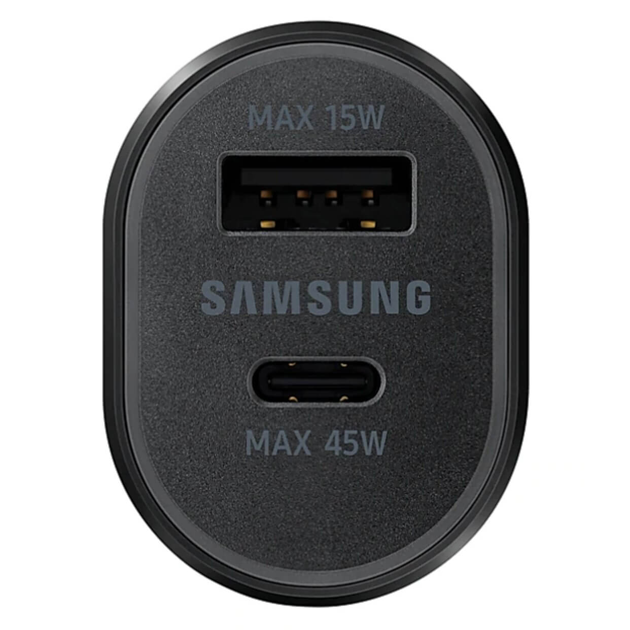 Оригинално зарядно за кола с USB-C и USB изходи за зареждане на мобилни устройства и USB-C кабел (черен) - Samsung Super Fast Dual Car Charger (45W+15W) (EP-L5300XBEGWW) (ритейл опаковка)