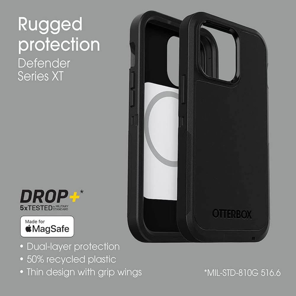 Otterbox Defender XT Case - хибриден удароустойчив кейс с вграден магнитен конектор (MagSafe) за iPhone 13 Pro (черен)