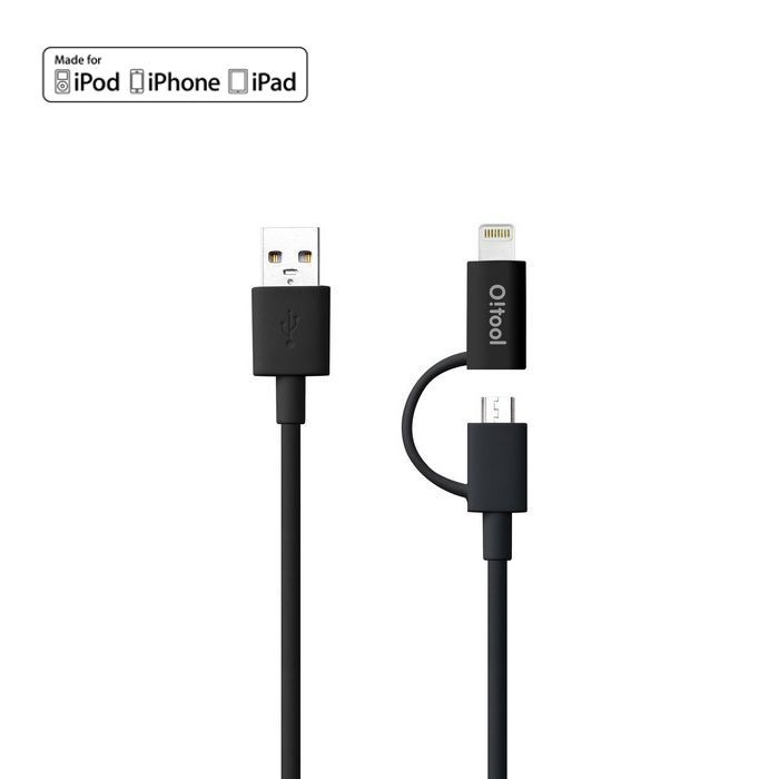 Ozaki O!Tool Combo OT227BK Cable - сертифициран кабел 2в1 за Apple и MicroUSB устройства (черен)