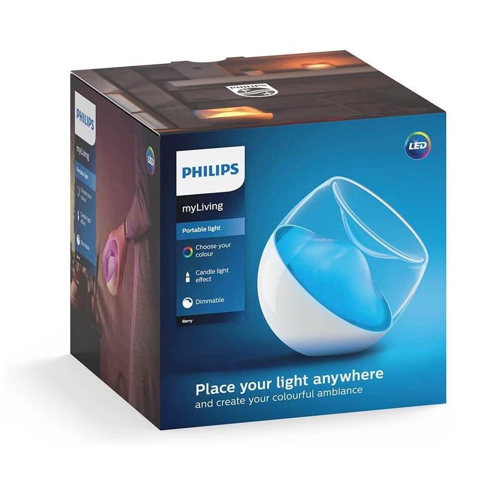 - 1 x Philips Berry Table Lamp - 1 x USB кабел за зареждане - 1 х ръководство за употреба