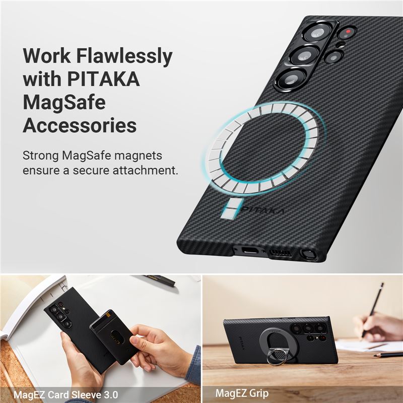 Pitaka MagEZ 3 600D Aramid Fiber MagSafe Case - кевларен кейс с MagSafe за Samsung Galaxy S23 Ultra (черен-сив)