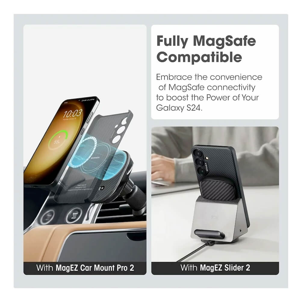 Pitaka MagEZ 4 600D Aramid Fiber MagSafe Case - кевларен кейс с MagSafe за Samsung Galaxy S24 (черен-сив)