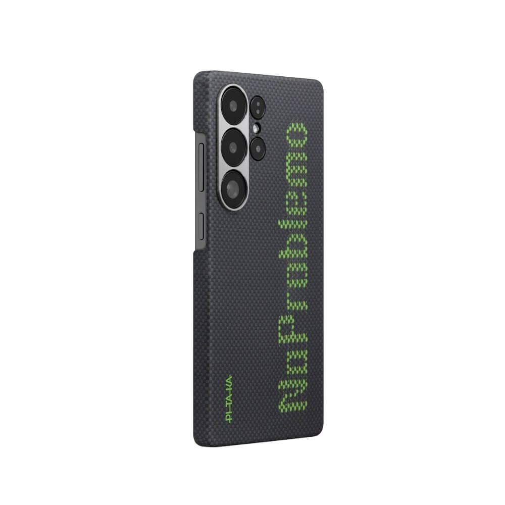 Pitaka Tactile Woven Luminous Aramid Fiber Case - кевларен кейс с MagSafe за Samsung Galaxy S25 Ultra (черен-зелен)