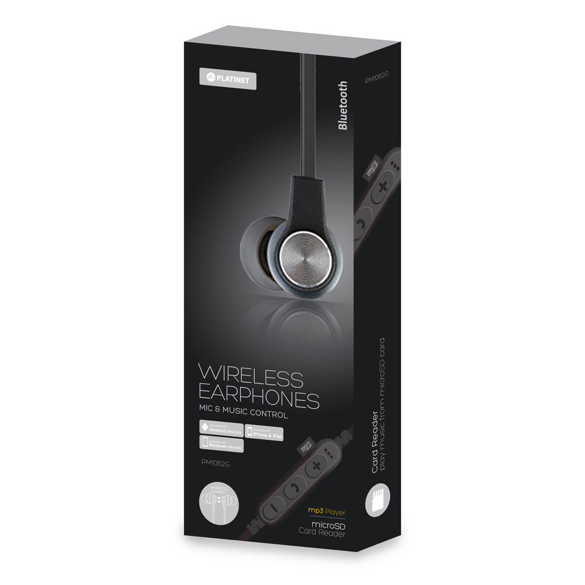 Platinet In-Ear Bluetooth 4.2 + MicroSD Earphones PM1062 - безжични спортни блутут слушалки за мобилни устройства (сив)