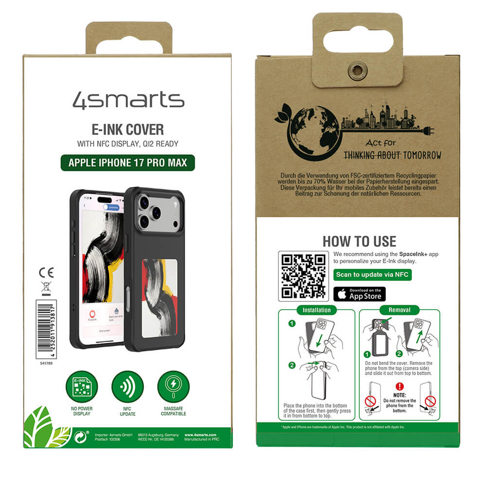 Представяме ви 4smarts E-Ink Case с NFC дисплей - иновационен калъф, който комбинира защита с уникален E-Ink дисплей, предоставящ ви възможността да показвате ваши изображения и текстове без консумация на енергия.
