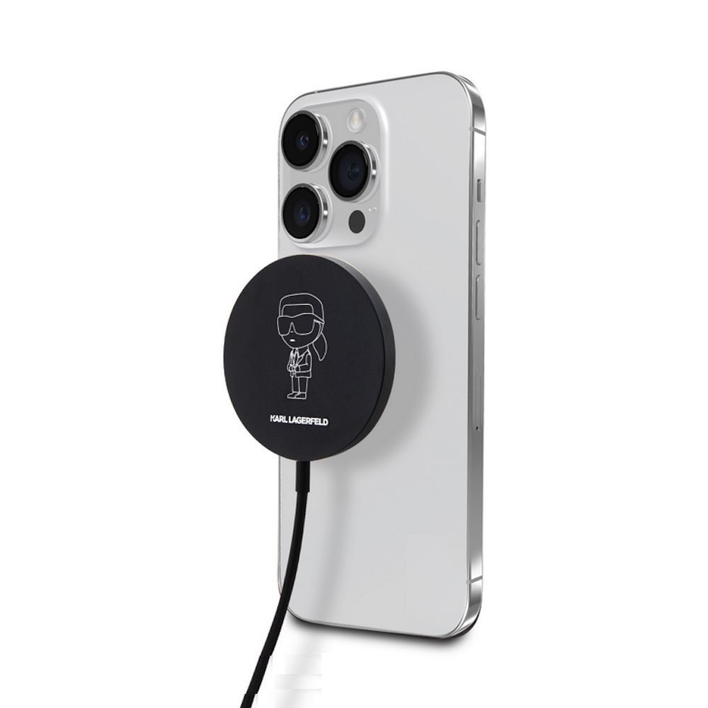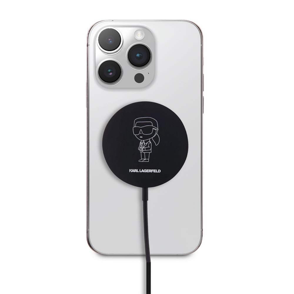 Поставка (пад) за безжично зареждане за iPhone с MagSafe - Karl Lagerfeld Ikonik NFT USB-C Magnetic Wireless Qi Charger 15W (черен)