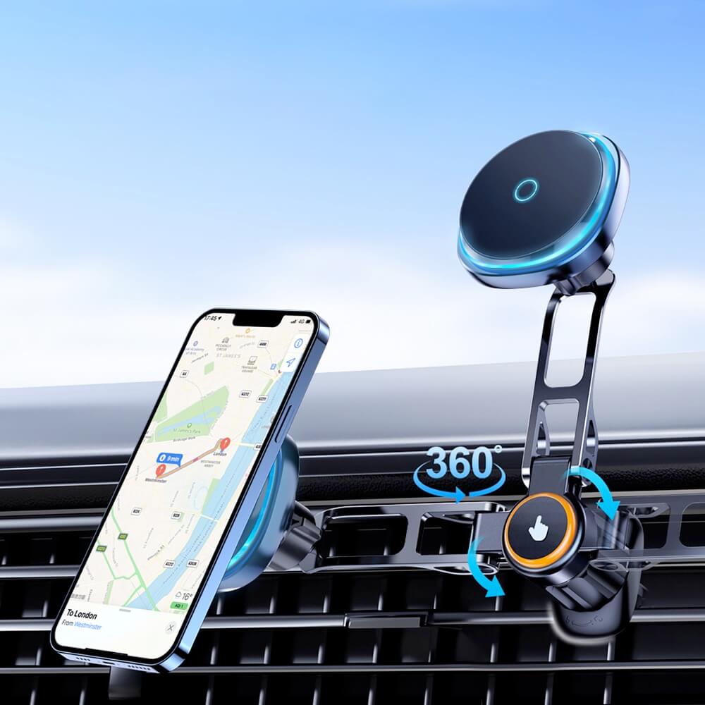 - Вградени 20 силни N52 магнита, които държат телефона ви здраво по време на шофиране – без вибрации и риск от падане