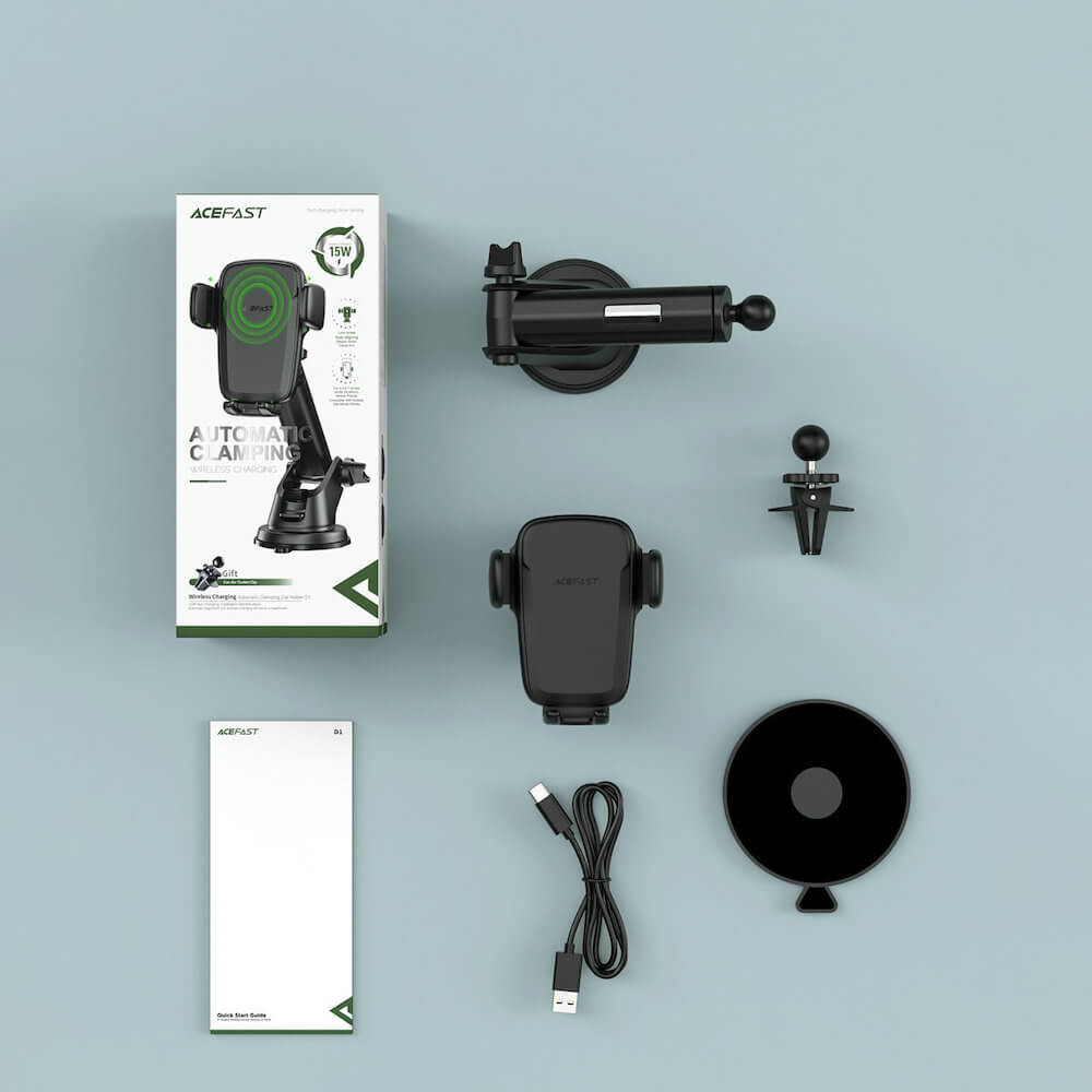 - 1 x Acefast Automatic Clamping Wireless Charging Car Holder 15W