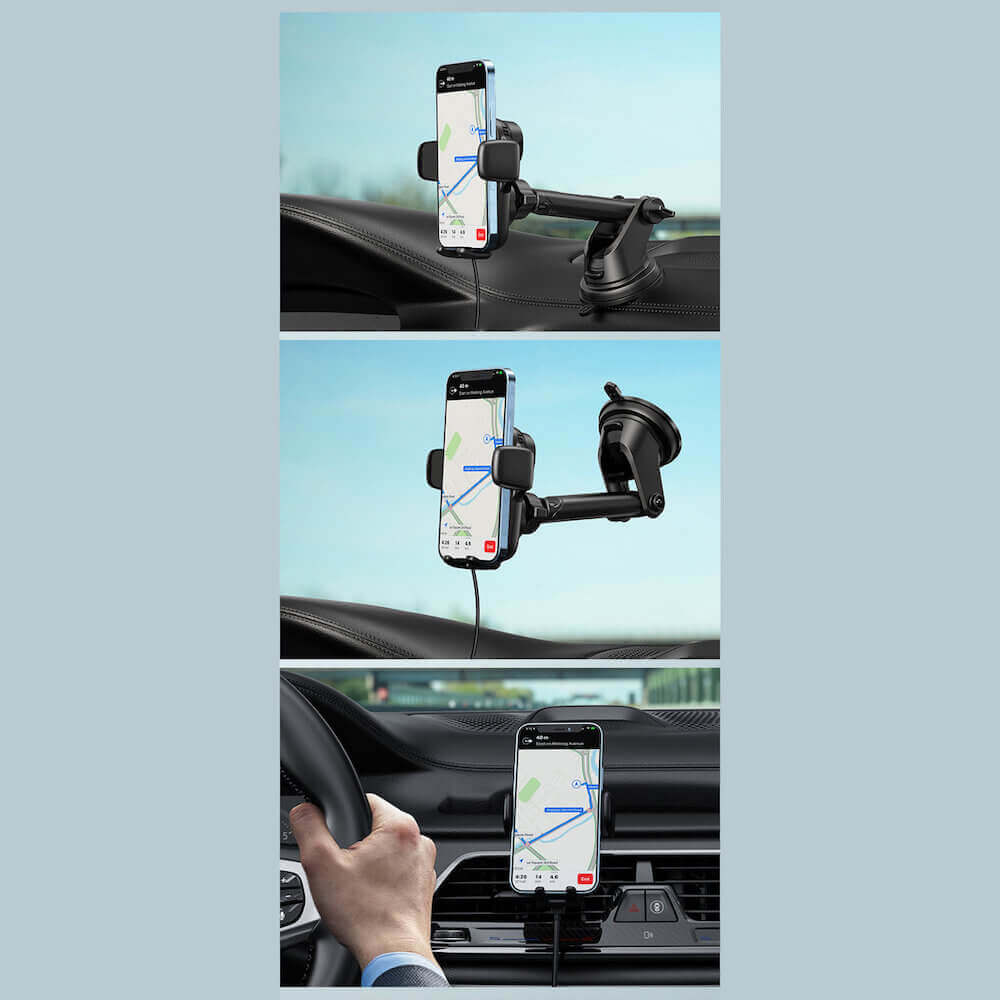 Тази поставка е идеална за дълги пътувания, където лесният достъп до навигация и приложения е от съществено значение. С бързото зареждане и автоматичното захващане, шофирането става по-удобно и безопасно.