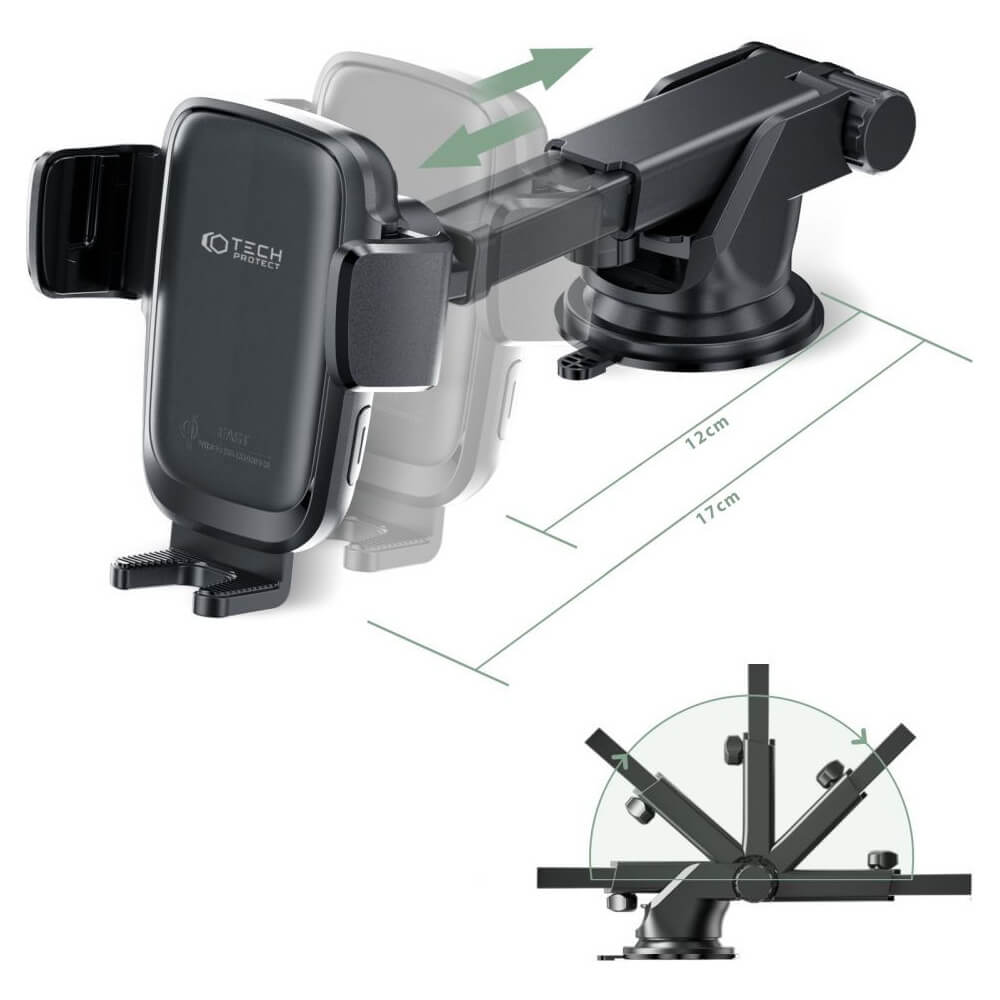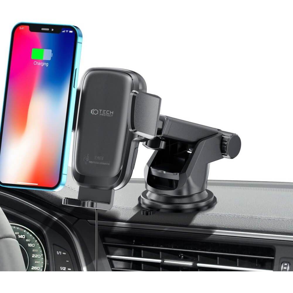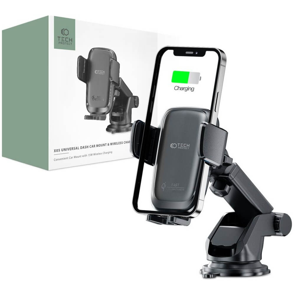 Поставка за таблото на кола с безжично зареждане за мобилни устройства - Tech-Protect X05 Wireless Charging Dash Car Holder 15W (черен)