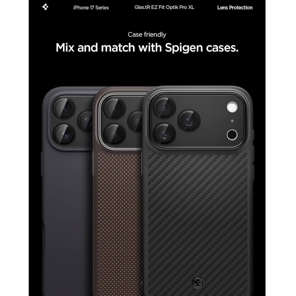 Предпазна плочка за камерата на iPhone 17 Pro - Spigen Glass tR EZ Fit Optik Pro XL (черен)