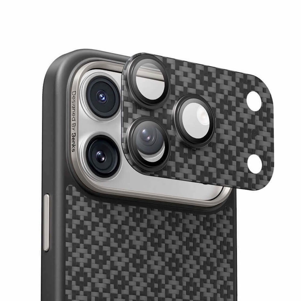 - Протекторът за камера Benks ArmorWarrior Aramid Lens Protector Tempered Glass предпазва обектива на вашия iPhone 17 Pro Max от всички ъгли и осигурява прецизен и лесен монтаж