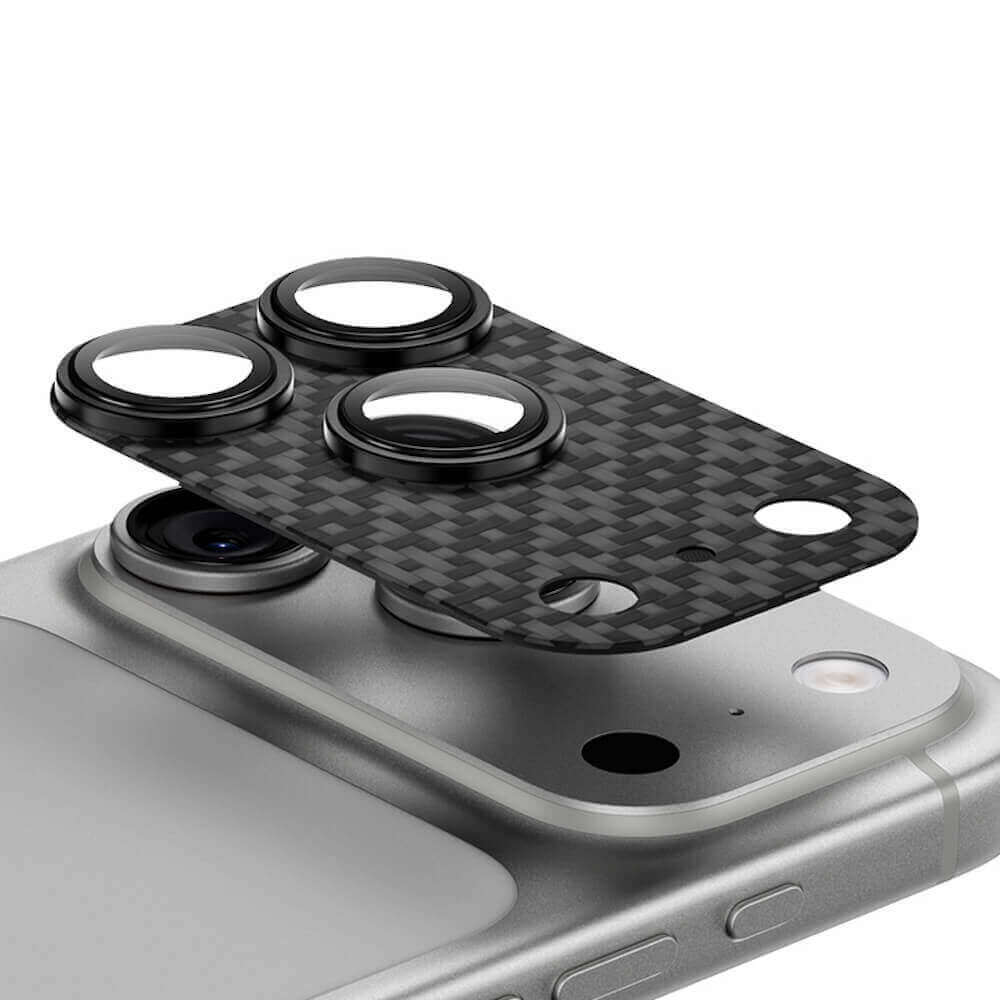 Предпазни стъклени лещи с цяла кевларна плочка за камерата на iPhone 17 Pro Max - Benks ArmorWarrior Aramid Lens Protector Tempered Glass (черен)
