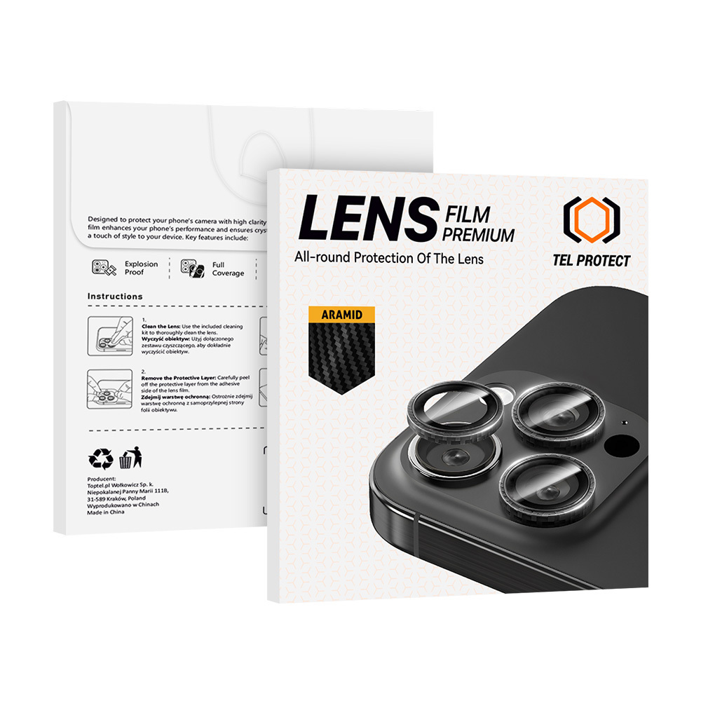 - В комплекта: - 1 x Tel Protect 3D Aramid Tempered Glass Camera Lens Protector - 1 x комплект за поставяне