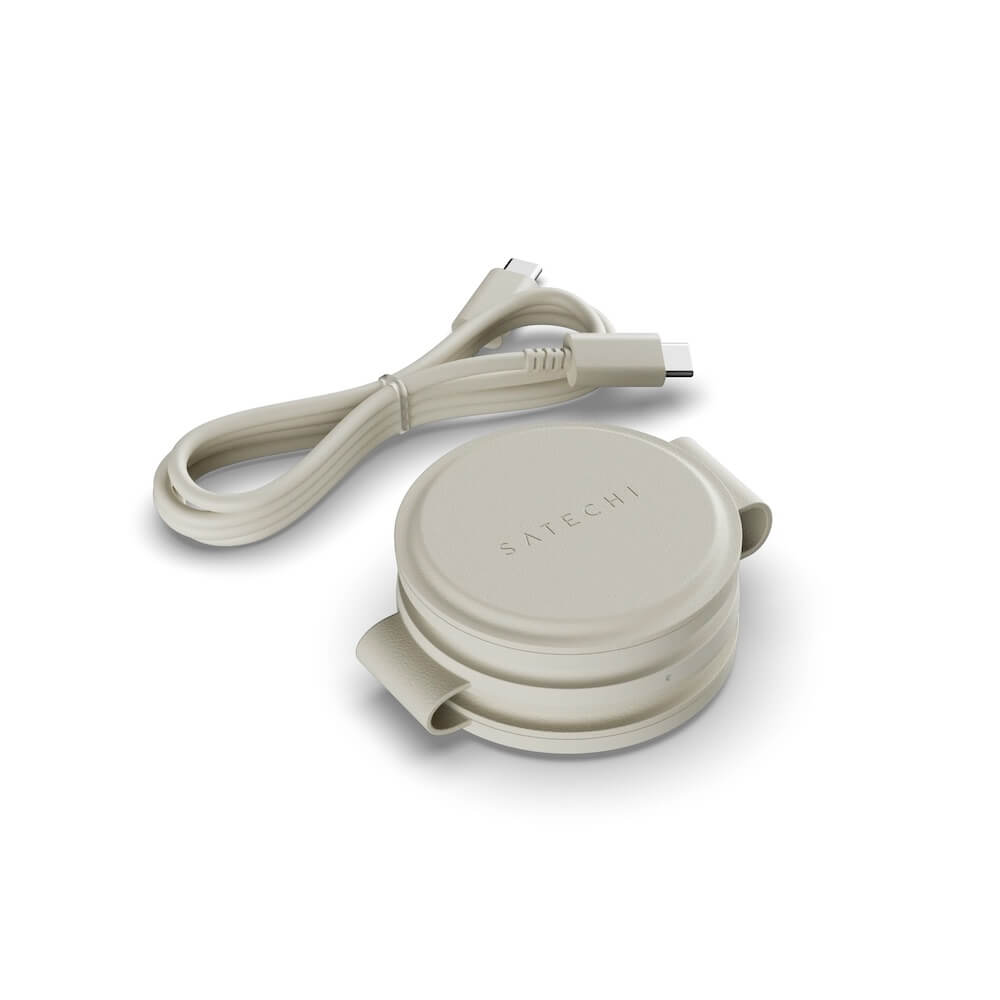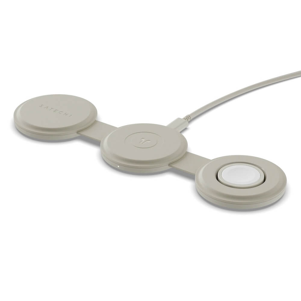 Преносима тройна поставка (пад) за безжично зареждане за iPhone с MagSafe, Apple Watch, AirPods и Qi съвместими мобилни устройства - Satechi OntheGo 3-in-1 MagSafe Qi2 Foldable Pad (бежов)