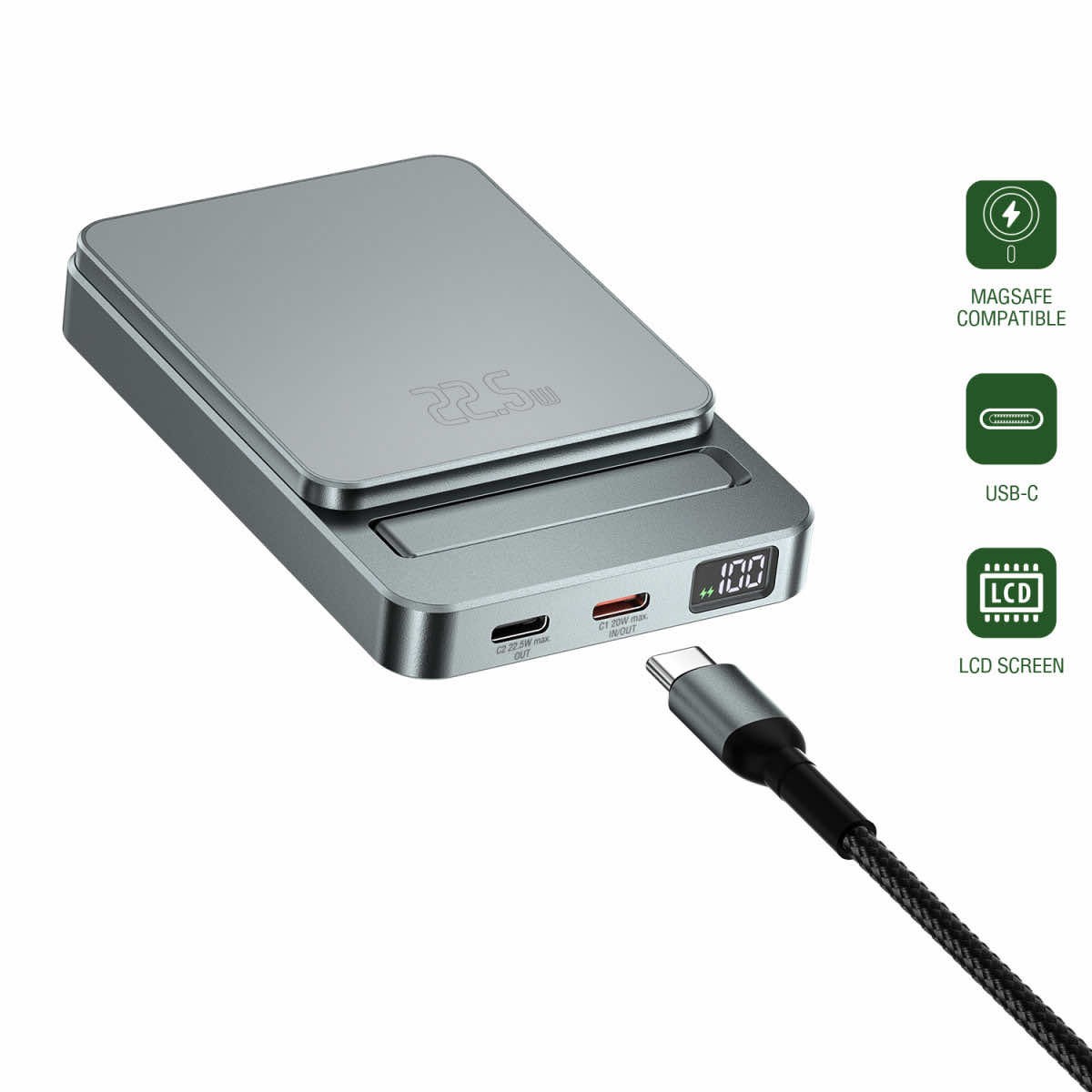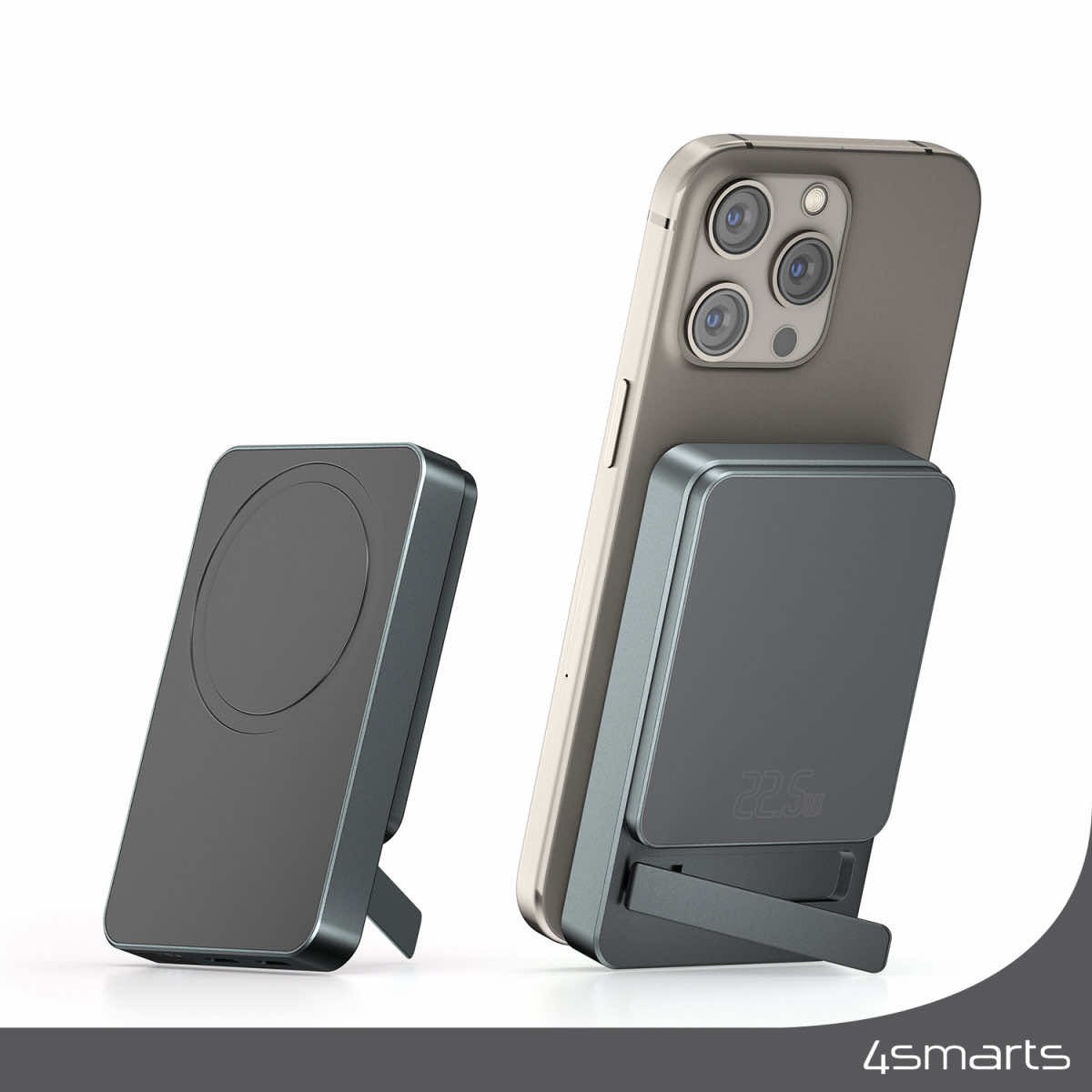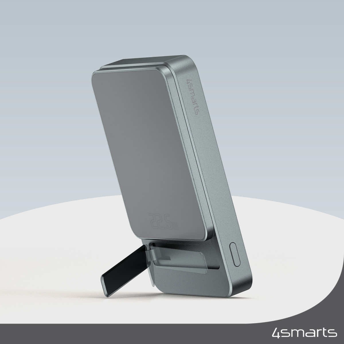 Преносима външна батерия с 2xUSB-C порта и безжично зареждане с MagSafe - 4smarts OneStyle MagSafe PowerBank 5000 mAh (сив)