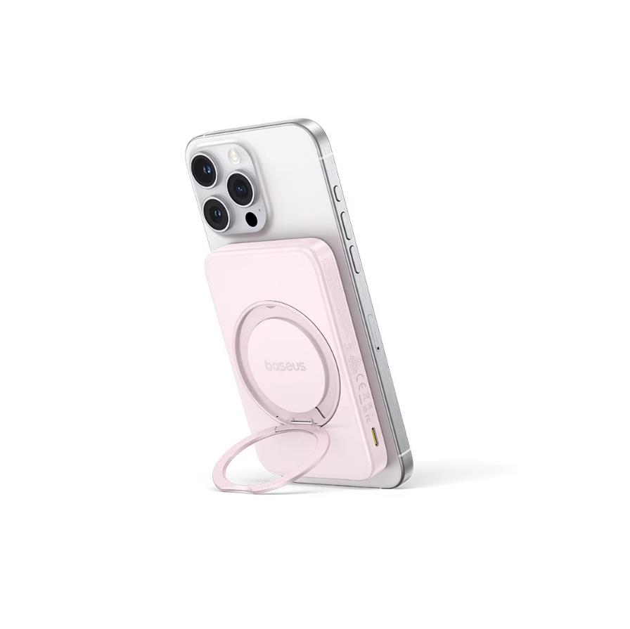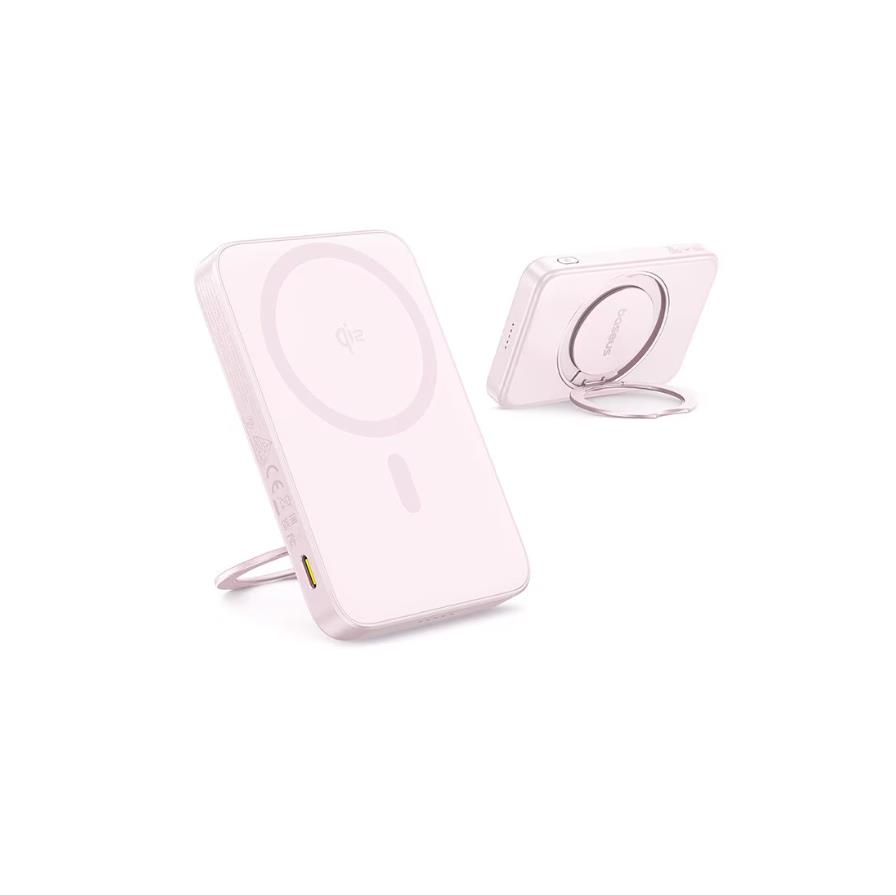 Преносима външна батерия с USB-C порт и безжично зареждане с MagSafe - Baseus PicoGo Qi2 Magnetic Wireless Charging Power Bank 5000 mAh 20W (розов)