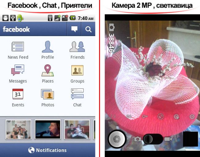 показващи не само външния му вид, но и функционалноста му. Снимките показват перфектната резолюция на екрана и само част от програмите които ще ползвате в този телефон две в едно - смарфон с две сим карти.